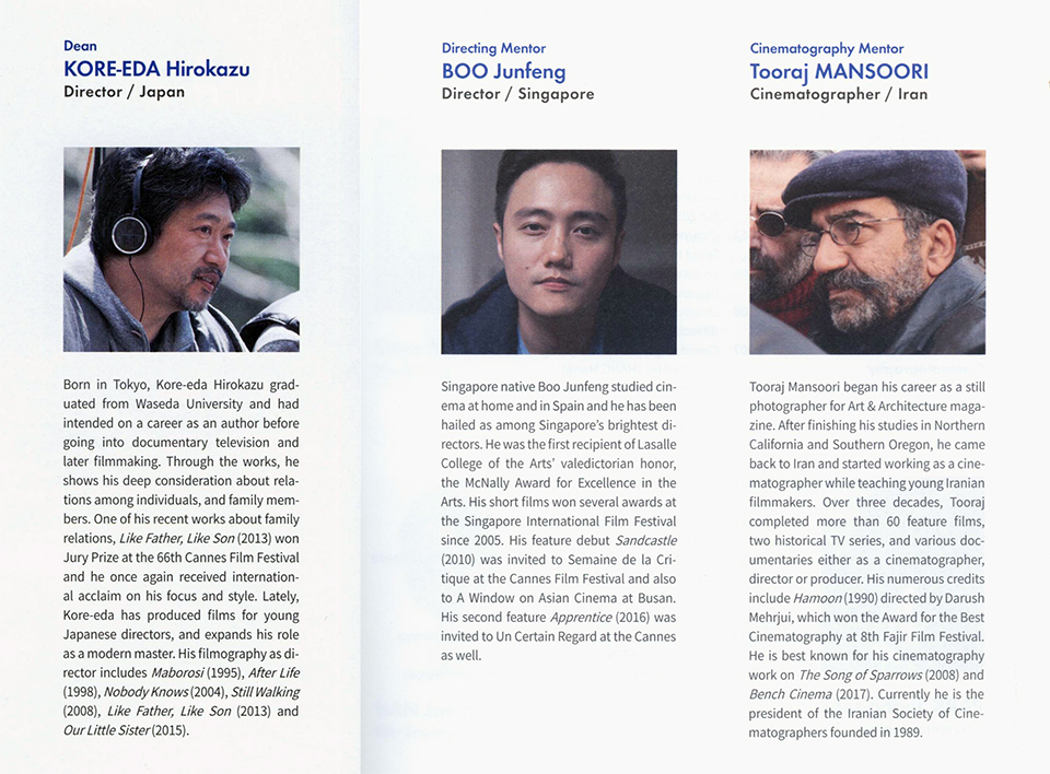 کسی که به عنوان مربی کارگردانی با من همکاری میکرد، آقای بو ، یک فیلمساز سنگاپوری است که سال گذشته هم در جشنواره بین المللی فیلم فجر از او فیلمی با موضوع مخالفت با مجازات اعدام به نمایش درآمد که فیلم بسیار خوبی بود. لازم به ذکر است که وی 12 سال پیش در همین برنامه آکادمی فیلم آسیا جزو پذیرفته شدگان رشته کارگردانی بود و در واقع حضورش ثابت کرد که این برنامه سالانه میتواند چه تاثیر مثبتی روی پذیرفته شدگان داشته باشد.