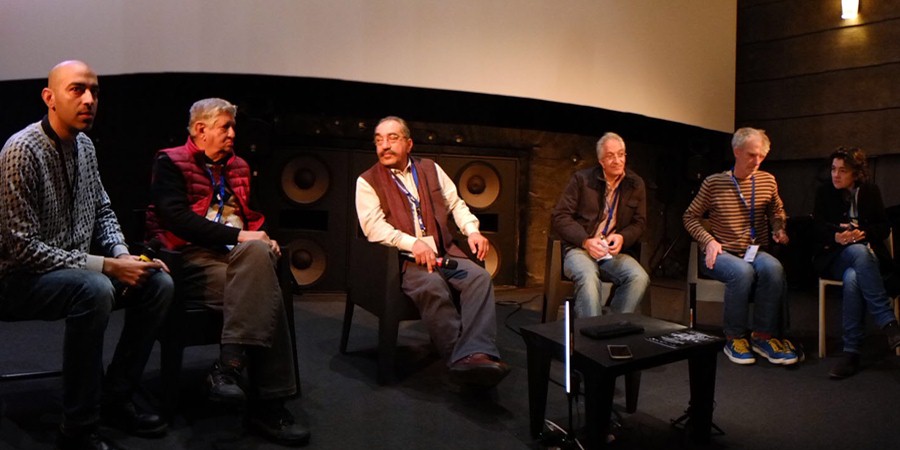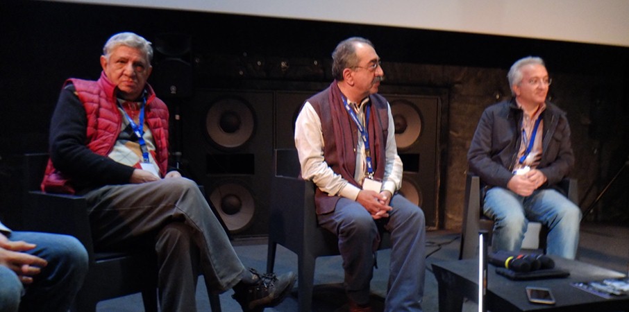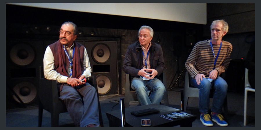 ـ تورج منصوری: من سلام میکنم و تشکر میکنم که به سینمای ایران این امکان داده شده تا در یک رابطه نزدیک با دوستاران سینما و کسانی که در فرانسه سینمای ایران را دنبال میکنند یک جلسه داشته باشیم برای آشنایی بیشتر. ما سعی کردیم که بخشهایی از سه دوره مختلف ازفیلمهای سینمای ایران را از سه فیلمبردار که یکیشون خود من هستم و آقای محمد آلادپوش و آقای همایون پایور به شما نشان بدیم. بعضی از این فیلمها با دشواری قابل دسترس بودند و بعضی هنوز بازسازی نشده و ممکنه کیفیت صدای مناسبی نداشته باشند. اما تعدادی از این فیلمها که مربوط به دوره دیجیتال هستند طبیعتا کیفیت مناسبی دارند. فعلا حرفی نمیزنم تا بعد از نمایش فیلمها.